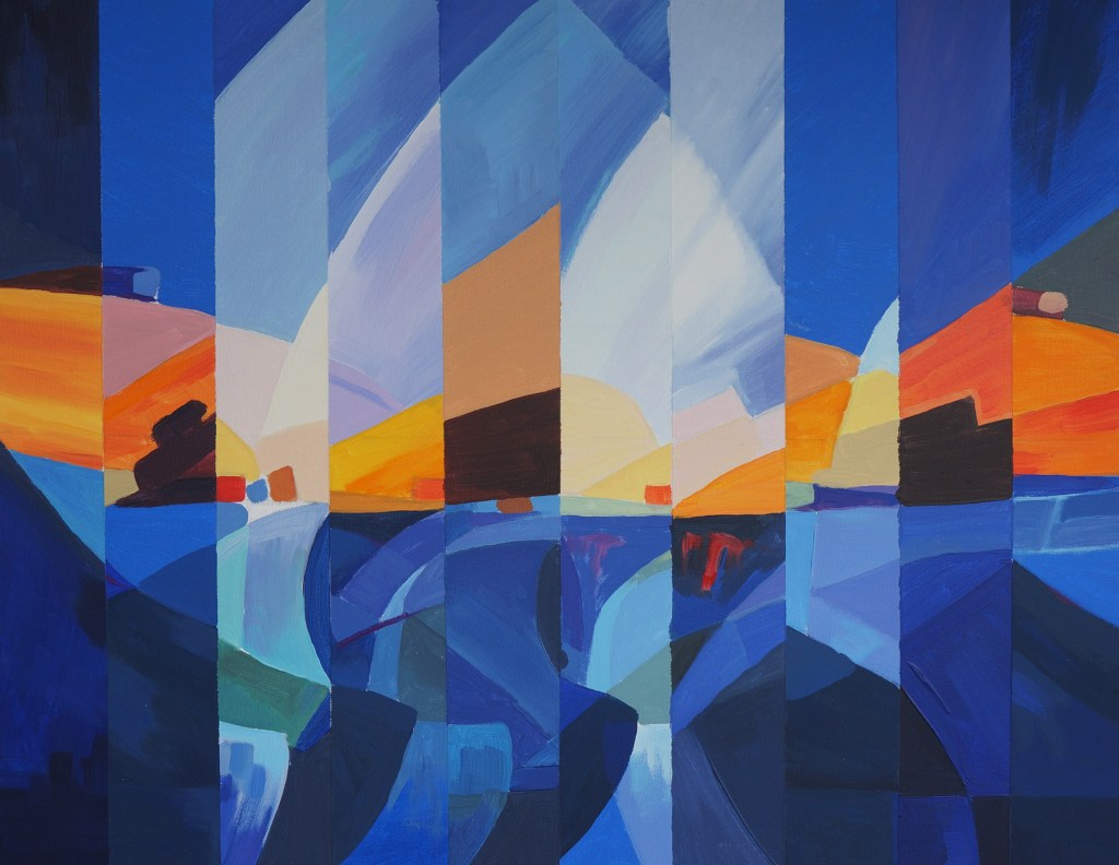 There are several works currently being worked on. Two acrylics and one oil. All part of the ‘fracture’ series. Sometimes I can finish these within days but it’s more usual to take weeks, sometimes months and even years to complete. This one is called ‘Steeperton Fracture’. It’s based on a distinctive Tor on the northern part of Dartmoor.